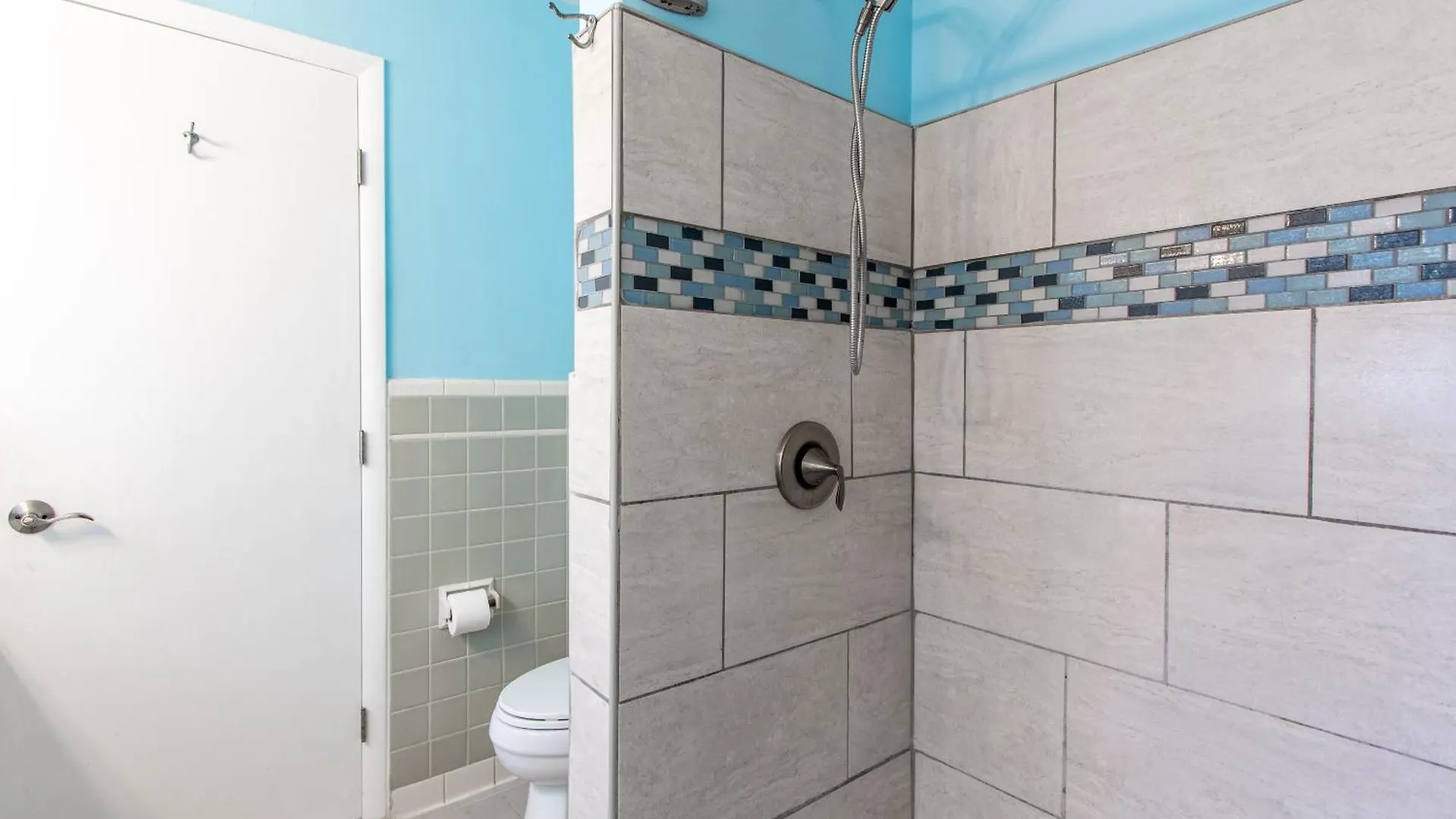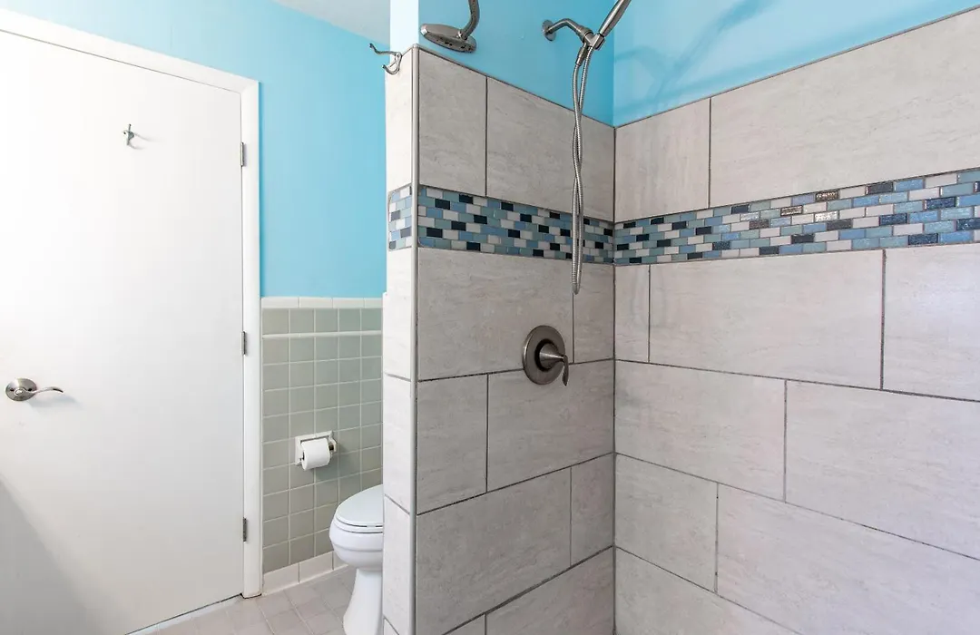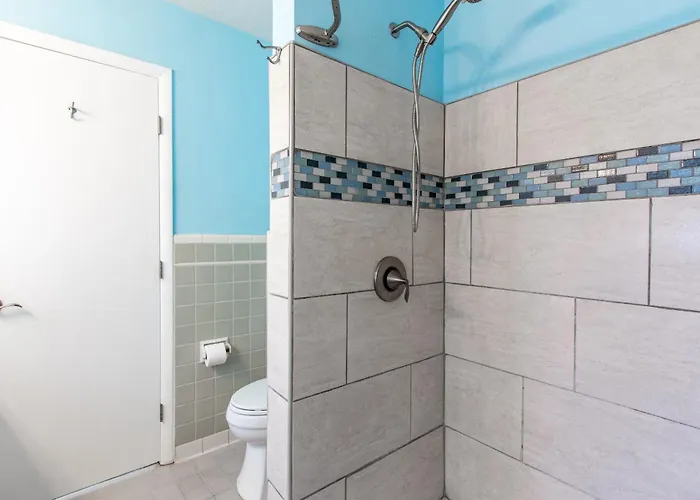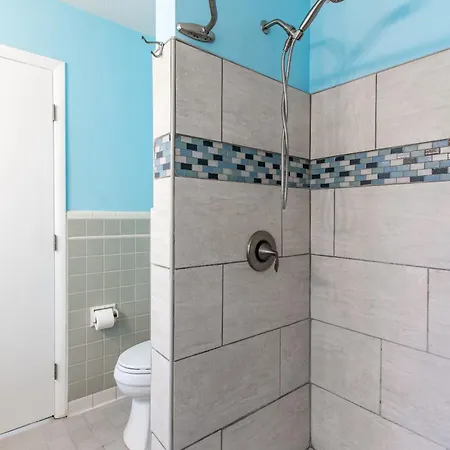 The Clearwater Beach villa includes a bathroom with a shower and a washing machine.